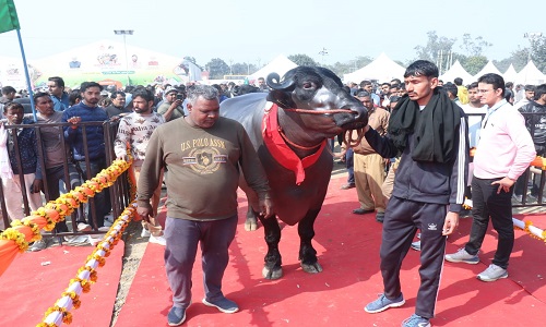 कुरुक्षेत्र केडीबी मेला क्षेत्र में 41वीं राज्य स्तरीय पशुधन प्रदर्शनी का दूसरा दिन भी बकरी, ऊंट, घोड़ी के नृत्य के नाम रहा। इस मेले में रैम्प के मंच को देखने के लिए हजारों की संख्या में पशुपालक एकत्रित हुए वहीं मुख्य मंच पर केन्द्रीय पशुपालन एवं मत्स्य मंत्री राजीव रंजन सिंह ऊर्फ ललन सिंह, इन्द्री के विधायक रामकुमार कश्यप और चेयरमैन धर्मवीर मिर्जापुर के साथ-साथ महानिदेशक डा. प्रेम सिंह मौजूद रहे। इस रैम्प पर सबसे पहले मुर्रा नस्ल के भैंसे, योद्धा केसरी ने सबका ध्यान अपनी ओर आकर्षित किया। उसके बाद रैंप पर पशुओं का दौर शुरू हुआ। इस कड़ी में बाहुबली और गजराज ऊंट ने संगीत की धुन पर जमकर डांस किया और दर्शकों को तालियां बजाने पर मजबूर कर दिया।