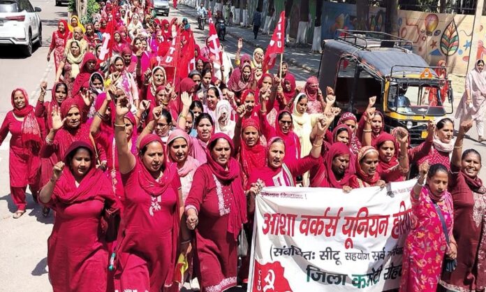 रोहतक : ऑनलाइन काम के नाम पर बेगारी, काटे गए मानदेय और केंद्र सरकार द्वारा घोषित बढ़ोतरी लागू न करने के खिलाफ एवं लंबित मांगों के समाधान को लेकर रोहतक जिले की सैकड़ों आशा वर्करों ने सिविल सर्जन कार्यालय पर किया जोरदार प्रदर्शन। समस्याओं का समाधान न होने पर आगामी 9 मई को स्वास्थ्य मंत्री के आवास मंडी अटेली आवास पर राज्यस्तरीय प्रदर्शन करने का अल्टीमेटम दिया। विरोध प्रदर्शन की अध्यक्षता आशा वर्कर्स यूनियन (सीटू) की जिला उपाध्यक्ष पुष्पा ने की और संचालन जिला सचिव फूलवती ने किया।