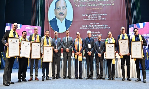 - न्यायपालिका के क्षेत्र में विशिष्ट योगदान के लिए हाई कोर्ट न्यायाधीशों संजय वशिष्ठ, राजेश भारद्वाज, हरकेश मनुजा, वीरेंद्र अग्रवाल, कुलदीप तिवारी, हरसिमरन सेठी, विकास सूरी, अमन, गुलचंदा को सम्मानित किया गया। बार काउंसिल ऑफ पंजाब एंड चंडीगढ़ के चेयरमैन विजेंद्र गहलावत तथा इनकम टैक्स अपीलेट ट्रिब्यूनल के वाइस प्रेसिडेंट राजपाल यादव को सम्मानित किया गया।