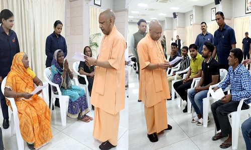 लखनऊ : मुख्यमंत्री योगी आदित्यनाथ ने सोमवार को ‘जनता दर्शन’ किया। प्रदेश भर से आये फरियादियों के पास मुख्यमंत्री स्वयं पहुंचे, उनकी समस्या पूछी, प्रार्थना पत्र लिया और अफसरों को निर्देश दिया कि निश्चित समयावधि में सभी की समस्याओं का उचित निस्तारण कराएं। मुख्यमंत्री ने कहा कि हर चेहरे पर खुशी और संतुष्टि ही सरकार की प्राथमिकता है।