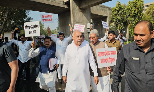 चंडीगढ़ : कांग्रेस विधायक मंगलवार को बीजेपी सरकार के खिलाफ मोर्चा निकालते हुए विधानसभा पहुंचे। सभी विधायकों ने नेता प्रतिपक्ष एवं पूर्व मुख्यमंत्री भूपेंद्र सिंह हुड्डा के नेतृत्व में विधानसभा का घेराव किया। हाईकोर्ट चौक से विधानसभा तक निकाले गए इस रोष प्रदर्शन में कांग्रेस प्रदेश अध्यक्ष राव नरेंद्र सिंह भी मौजूद रहे।