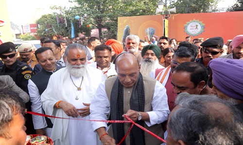 रक्षा मंत्री राजनाथ सिंह सोमवार को कुरुक्षेत्र विश्वविद्यालय तथा कुरुक्षेत्र विकास बोर्ड के संयुक्त तत्वावधान में ब्रह्मसरोवर के पावन तट पर पुरुषोत्तमपुरा बाग में स्थापित हरियाणा पैवेलियन का उद्घाटन करने के उपरांत बातचीत कर रहे थे। इससे पहले रक्षा मंत्री राजनाथ सिंह, कैबिनेट मंत्री अनिल विज, कैबिनेट मंत्री कृष्ण कुमार बेदी, गीता मनीषी स्वामी ज्ञानानंद महाराज, सांसद नवीन जिंदल, पूर्व राज्यमंत्री सुभाष सुधा ने हरियाणा पैवेलियन में पहुंचकर विधिवत उद्घाटन किया। इस दौरान हरियाणा की आन-बान-शान पगड़ी बांधकर रक्षा मंत्री राजनाथ सिंह का सम्मान किया गया।