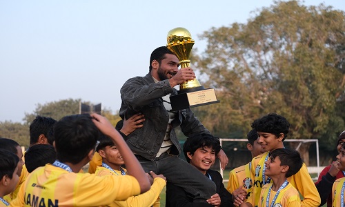 Rohtak News : आरएफपीएल (RFPL) टूर्नामेंट के अंतर्गत किंग्स कॉलेज में आयोजित फुटबॉल लीग प्रतियोगिता में जीडी गोयनका इंटरनेशनल स्कूल की फुटबॉल टीम ने उत्कृष्ट प्रदर्शन करते हुए प्रतियोगिता का खिताब अपने नाम किया। गोयनका की टीम ने लीग के अंतिम मैच में किंग्स कॉलेज को 3-0 से पराजित कर फाइनल में प्रवेश किया।