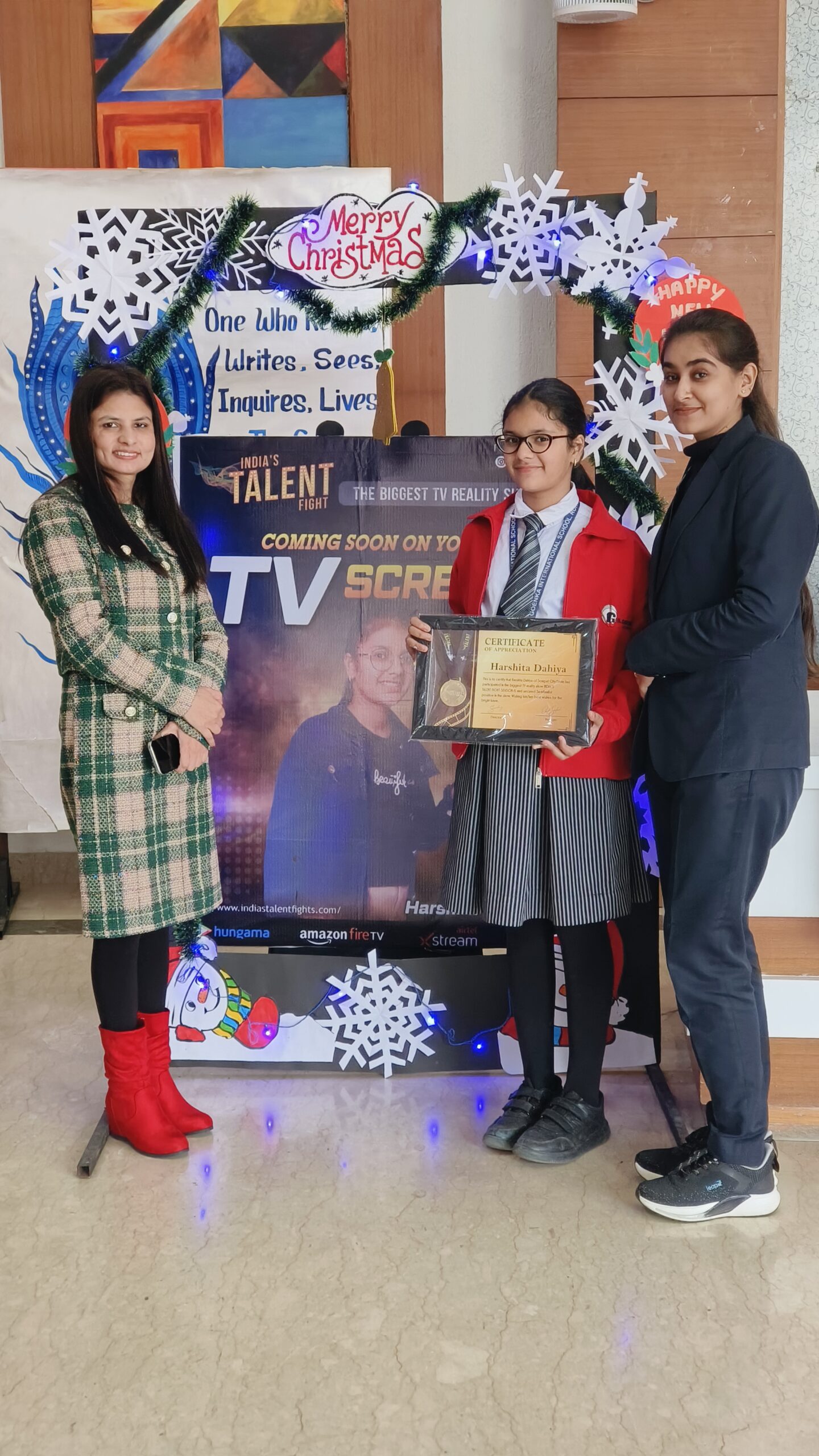 जी डी गोयनका इंटरनेशनल स्कूल, रोहतक की प्रतिभाशाली छात्रा हर्षिता दहिया ने लोकप्रिय टीवी टैलेंट शो इंडिया टैलेंट फाइट (ITF) में उत्कृष्ट प्रदर्शन करते हुए सेमी-फाइनल में प्रवेश कर विद्यालय, परिवार एवं क्षेत्र का नाम गौरवान्वित किया है।