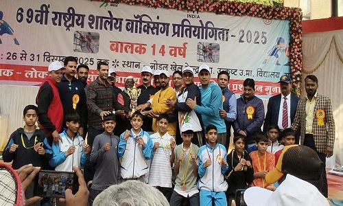 Rohtak News : 69वीं नेशनल स्कूल गेम्स 2025–26 के अंतर्गत बॉक्सिंग प्रतियोगिता का आयोजन 26 दिसम्बर से 31 दिसम्बर 2025 तक मध्य प्रदेश के गुना शहर में किया गया। इस राष्ट्रीय स्तर की प्रतिष्ठित प्रतियोगिता में हरियाणा प्रदेश के अंडर-14 आयु वर्ग के बालक बॉक्सरों ने हरियाणा का प्रतिनिधित्व करते हुए उत्कृष्ट प्रदर्शन किया और कई पदक जीतकर प्रदेश का नाम राष्ट्रीय स्तर पर गौरवान्वित किया।