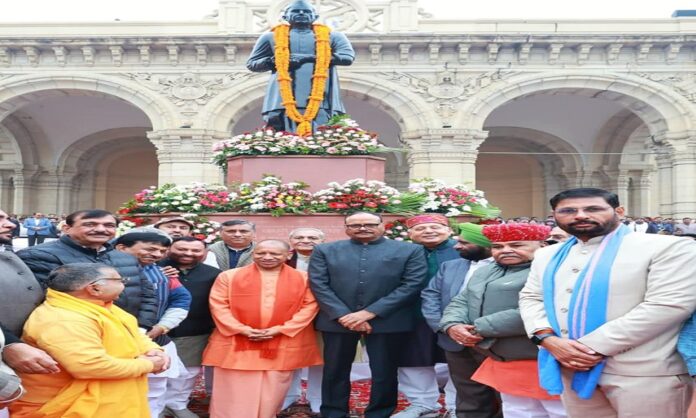 मुख्यमंत्री योगी आदित्यनाथ ने पूर्व प्रधानमंत्री भारत रत्न चौधरी चरण सिंह के जन्मदिवस पर विधान भवन प्रांगण स्थित उनकी प्रतिमा पर पुष्प अर्पित किया। सीएम ने ‘किसान सम्मान दिवस’ पर किसानों को ट्रैक्टर की चाबी दी। साथ ही किसानों, वैज्ञानिकों, एफपीओ आदि को सम्मानित भी किया। मुख्यमंत्री ने चौधरी चरण सिंह सीड पार्क अटारी लखनऊ के प्लॉट आवंटन प्रक्रिया का बटन दबाकर शुभारंभ किया।
