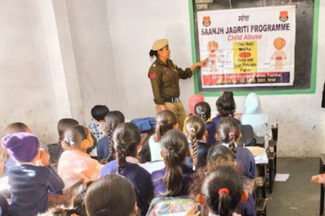 आप सरकार के तहत पंजाब पुलिस के दृष्टिकोण को जो विशिष्ट बनाता है, वह है ‘सांझ’ शब्द में निहित सहयोग की गहरी भावना – जिसका अर्थ है साझेदारी। सांझ परियोजना ने राज्य भर में जिला सामुदायिक पुलिस संसाधन केंद्र, 114 उप-मंडल सामुदायिक पुलिस सुविधा केंद्र और 363 पुलिस स्टेशन आउटरीच केंद्र स्थापित किए हैं, जिससे एक अनूठा नेटवर्क बना है जहाँ पुलिस अधिकारी न केवल कानून लागू करते हैं बल्कि आने वाली पीढ़ियों के संरक्षक, मार्गदर्शक और रक्षक भी बनते हैं। हर हफ्ते, पंजाब पुलिस के जवान स्कूलों का दौरा अधिकारियों की डरावनी वर्दी में नहीं, बल्कि बड़े भाइयों और शिक्षकों की तरह करते हैं जो देखभाल और चिंता की भाषा बोलते हैं।