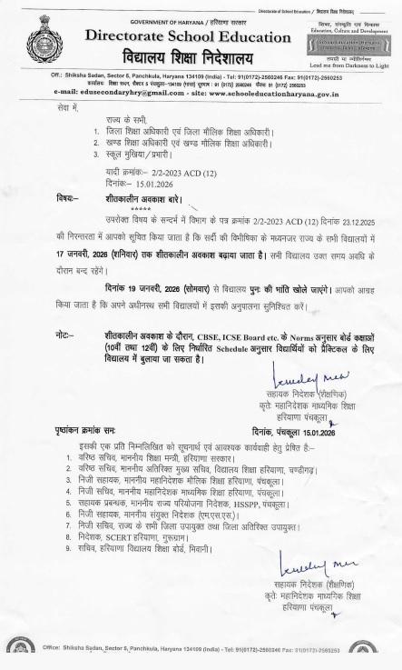 School Closed: हरियाणा में शीतलहर के चलते शिक्षा विभाग ने स्कूलों की छुट्टियों को बढ़ा दिया है। अब प्रदेश में 19 जनवरी को पुनः की भांति स्कूल खुलेंगे।