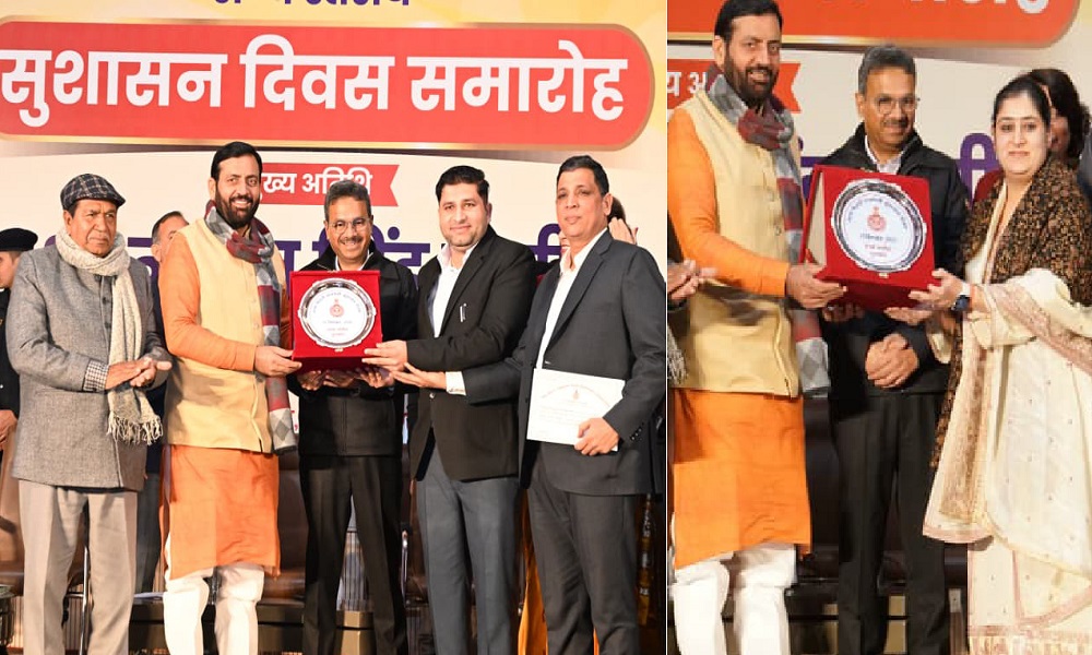 यह अवार्ड पूर्व प्रधानमंत्री स्वर्गीय अटल बिहारी वाजपेयी और महान स्वतंत्रता सेनानी महामना पंडित मदन मोहन मालवीय की जयंती के अवसर पर गुरुवार को पंचकूला में आयोजित राज्यस्तरीय सुशासन दिवस के कार्यक्रम में दिये गए।