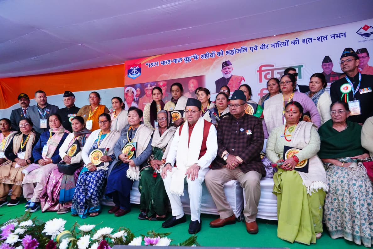मुख्यमंत्री ने कहा कि 1971 में पाकिस्तान के लगभग 93 हजार सैनिकों ने हमारी सेना के समक्ष आत्मसमर्पण किया। उन्होंने कहा कि इस युद्ध में वीरभूमि उत्तराखंड के 248 बहादुर सपूतों ने भी अपना सर्वोच्च बलिदान दिया। हमारे प्रदेश के 74 सैनिकों को अपने अदम्य साहस और शौर्य के लिए विभिन्न वीरता पदकों से सम्मानित भी किया गया था। उन्होंने कहा कि उत्तराखंड के लगभग प्रत्येक परिवार का कोई न कोई सदस्य सेना में है। प्रधानमंत्री श्री नरेंद्र मोदी के नेतृत्व में जवानों का मनोबल बढ़ाने के साथ ही सेना को अत्याधुनिक तकनीक और हथियारों से सुसज्जित किया जा रहा है।