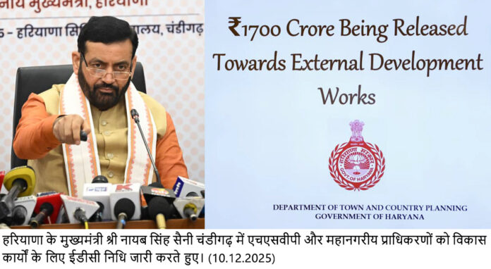 चंडीगढ़, 10 दिसंबर — हरियाणा सरकार द्वारा शहरी विकास को सुदृढ़ करने और राज्य की प्रमुख शहरी संपदाओं में बुनियादी ढांचा सुधार को गति देने के उद्देश्य से हरियाणा शहरी विकास प्राधिकरण और विभिन्न महानगरीय विकास प्राधिकरणों को 1700 करोड़ रुपये की राशि जारी की।