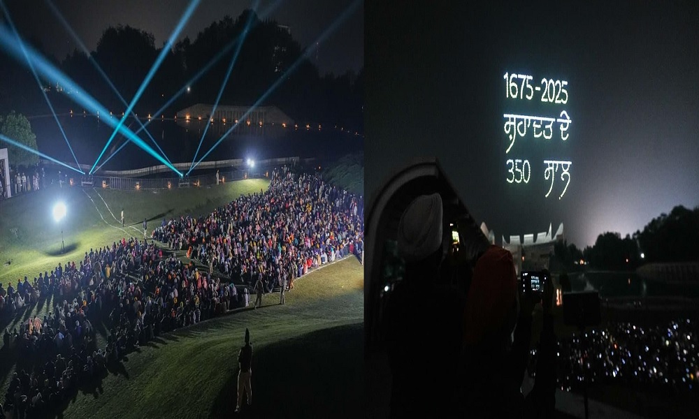 इस शानदार प्रदर्शन में तीन हजार से अधिक ड्रोन का इस्तेमाल किया गया, जिन्होंने पंजाब के आसमान में गुरु तेग बहादुर जी के जीवन और धार्मिक स्वतंत्रता के लिए उनकी शहादत की कहानी को रोशनी से लिखा। जैसे ही अंधेरा छाया, ड्रोन एक साथ आसमान में उठे और पवित्र खंडा का निर्माण किया, जो रात के अंधेरे में सोने की तरह चमक रहा था। यह देखकर पूरी भीड़ में श्रद्धा और आश्चर्य की लहर दौड़ गई।